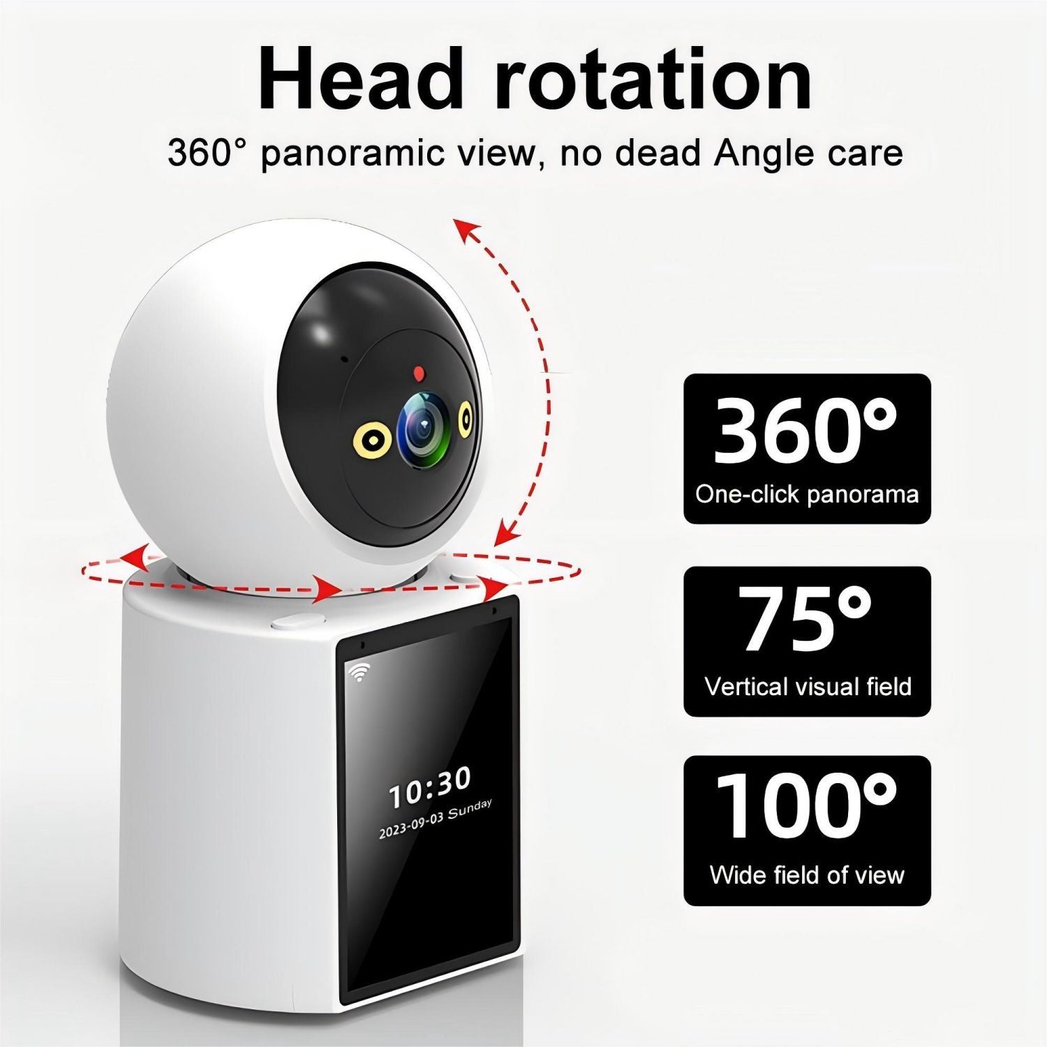The V25 1080P security camera is designed to provide comprehensive home monitoring with its 2.8-inch IPS screen. allowing for two-way video calls and real-time conversations. Featuring smart pan/tilt for full coverage. motion detection. and night vision. this camera ensures that your home is always protected. Easily manage settings via the V360 Pro app. and share access with your family for enhanced convenience and control.