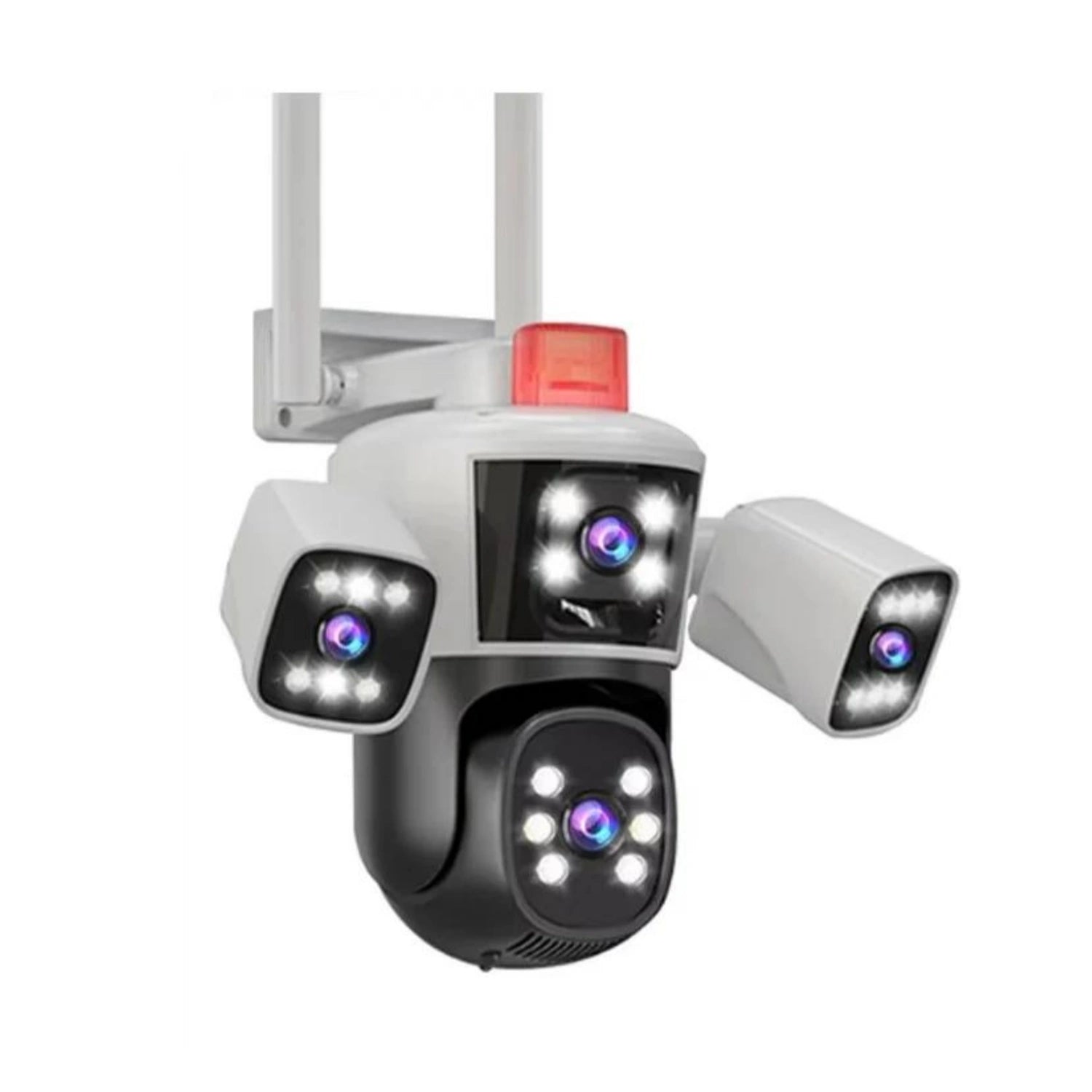 The V49 6K PTZ Camera features an innovative three-lens design with triple screens for all-around monitoring. It offers hybrid 10x zoom. advanced AI auto-tracking. and 50m ultra-clear night vision. ensuring comprehensive surveillance. Equipped with two-way audio. IP66 waterproofing. and TF/cloud storage options. it is ideal for both residential and commercial security needs.